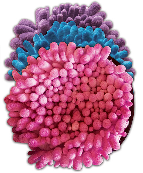 These discs feature shag noodles of varying sizes and lengths that are cuddly soft and soothing.