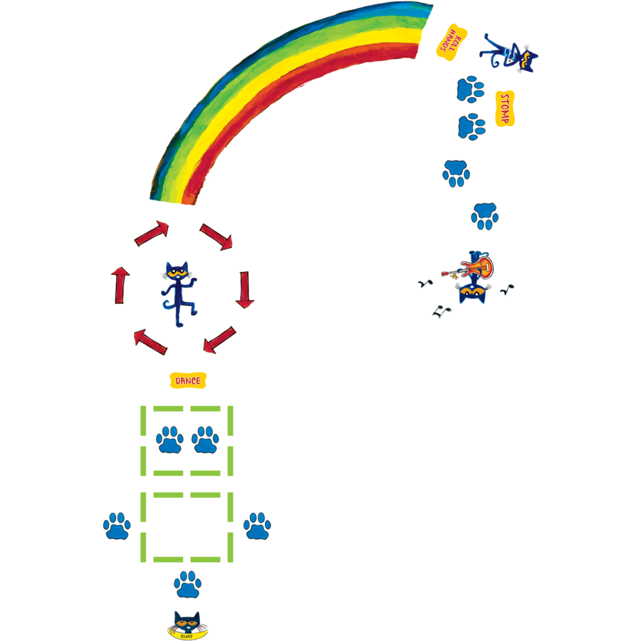 | Provide some focus and direction for movement and sensory breaks, or provide an engaging way to develop motor skills. Kids spin, tiptoe, leap, crawl, hop, quat, stretch and dance as they follow this Pete the Cat sensory path. The pieces are smooth, durable, and able to be cleaned without damaging pieces. They attach firmly to any smooth, untextured floor. The path can stretch down a hallway or be placed in a smaller area. Pete the Cat is 13″ x 11.” Includes 44 pieces. |