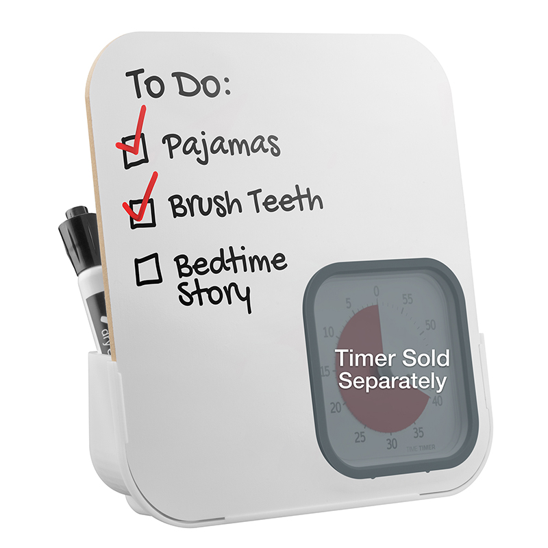 | The Time Timer® Dry Erase Board is perfect for kids who struggle with time management . It is perfect for time-sensitive messages and helps students complete schedules on time. The Time Timer fits into the dry erase board and provides a visual cue of remaining time to complete a routine/list. Time Timer and dry erase markers are NOT included. |